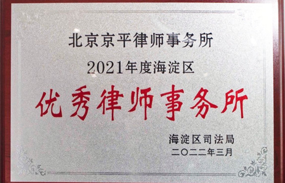 北京京平律師事務所榮獲2022年度海淀區“優秀律師事務所”稱號